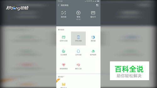 点击“钱包”,然后点击“手机充值”。