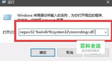 这时候再运行的弹窗中中输入注册动态连文件的命令regsvr32 %windir%\system32\mmcndmgr.dll