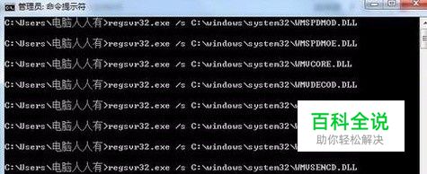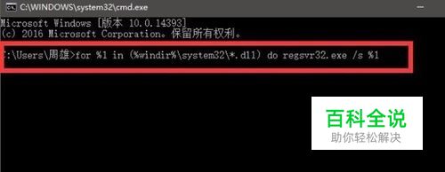 for %1 in (%windir%\system32\*.dll) do regsvr32.exe /s %1 复制 粘贴这个命令到窗口中,按回车键。