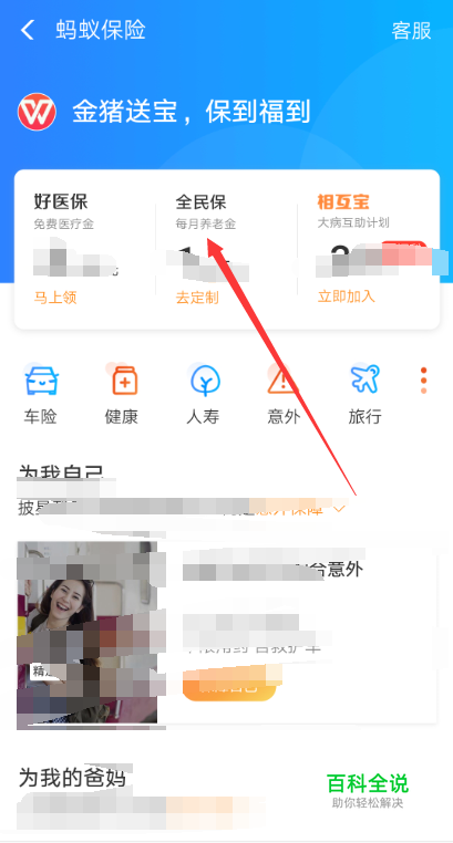 进入蚂蚁保险界面后,直接点击这里的【全民保】,如下图所示。