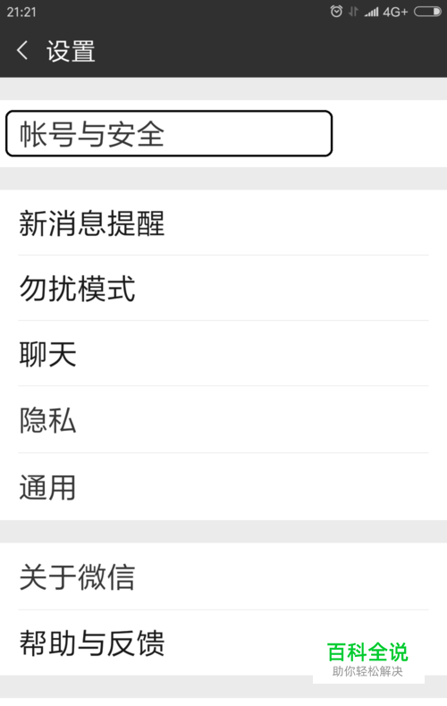 第三步:进入“设置”对话框,点击最上面的“账号与安全”。