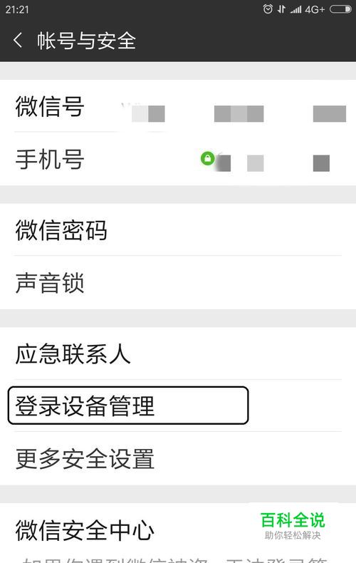 第四步:进入“账号与安全”界面,找到“登录设备管理”,点击它。