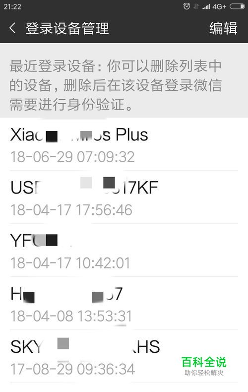 第五步:进入“登陆设备管理”界面,下面的列表就是你微信登陆过的设备,你可以点击“编辑”按钮对这些设备进行管理,如果删除某个设备那么你下次在这个设备登录的时候就需要进行验证。