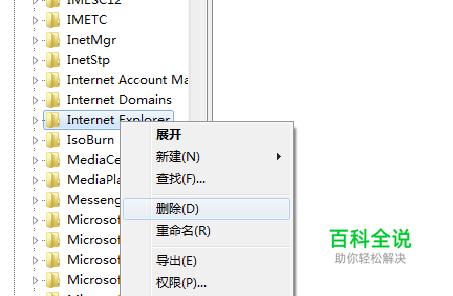 开始-》搜索-》输入regedit进入注册表,选择HKEY_lOCAL_MACHINE\SOFTWARE\Microsoft\Internet Explorer,右键选择Internet Explorer,点击删除,期间会报错,不用管,多删几次,直到只剩下两个文件夹,重启电脑。