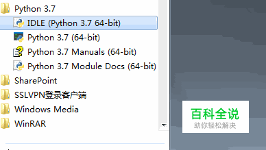 第一,首先启动Python自带的集成开发环境IDLE。点击开始-->Python 3.7-->IDLE.