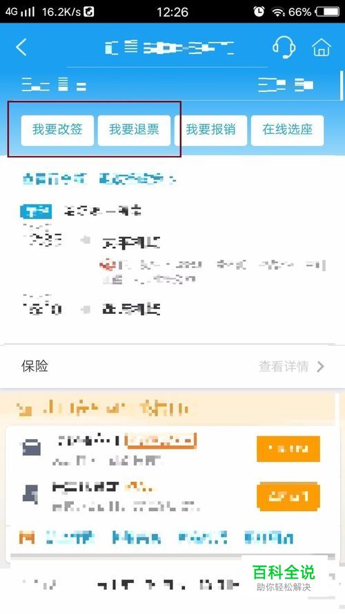 第四步:进入订单后,根据需求选择“我要改签/我要退票”,如图所示