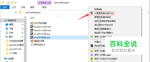 以管理人身份打开CAD2010注册机。(注意系统位数要一致)