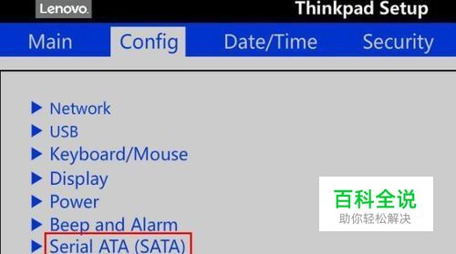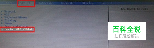 关闭电脑重新启动进入BIOS界面找到Config----Serial ATA(SATA)