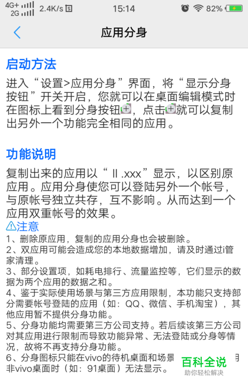 “显示分身按钮”下方有一个应用分身说明,可以打开看看,里面有详细的介绍。