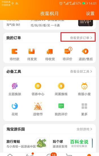 第二步进去我的界面之后,点击我的订单旁边的“查看更多订单”,如下图所示: