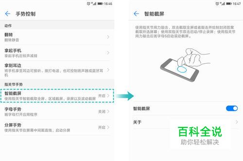 指关节截屏 EMUI系统中的智能辅助可以让你使用指关节(比如食指关节)快速截取部分或完整的屏幕画面。点击【设置】>【智能辅助】>【手势控制】,开启【智能截屏】按钮。