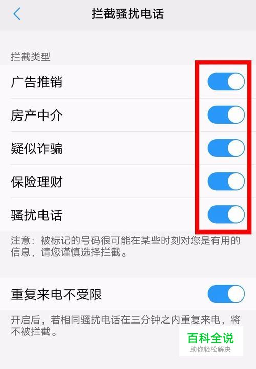 在这可以设置各种拦截类型,包括广告推销、房产中介、理财保险等。