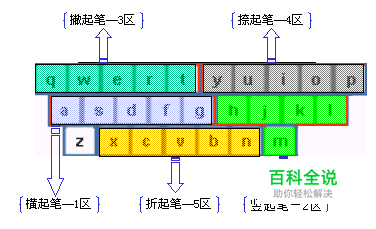 了解字根分区 五笔字根在键盘上有5个分区,分别为: 1区横起笔:GFDSA 2区竖起笔:HJKLM 3区撇起笔:TREWQ 4区点起笔:YUIOP 5区折起笔:NBVCX