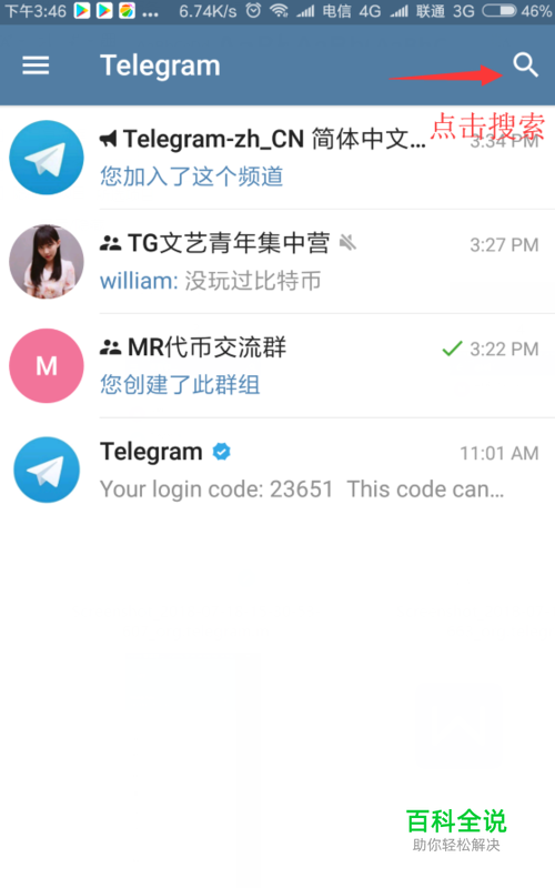 1、如何将telegram英文语言改为中文语言? (ps:废话不说,直接上图操作,请大家按照我的步骤进行) 第一步:先使用能够上网的软件,链接服务器(这个每个人用的软件都不一样); 第二步:点开“telegram”手机客户端; 第三步:点击“右上角搜索”,进入搜索页面;