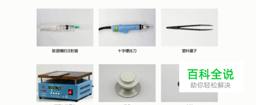 1、准备好要用到的拆机工具: 装酒精注射器、十字螺丝刀、塑料镊子、恒温加热平台、吸盘、卡针。