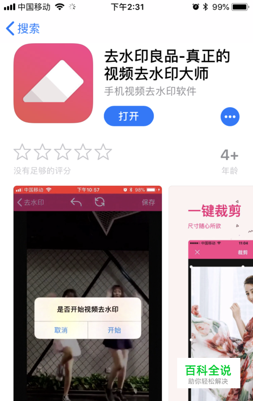 首先,打开AppStore,搜索关键字“去水印良品”,点击下载,等待下载安装完成