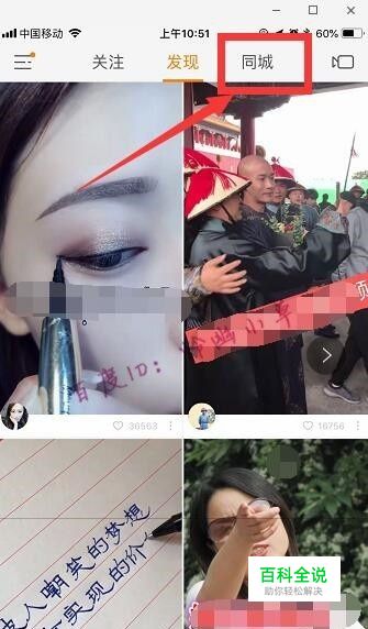 打开手机快手app,点击“同城”。