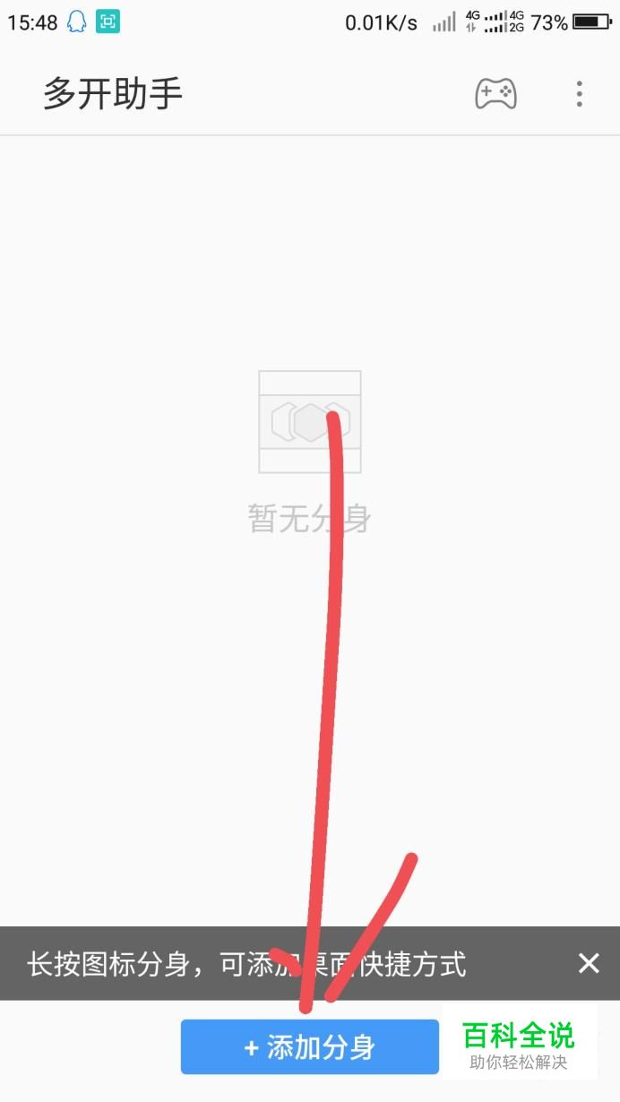 将该应用在手机上打开,点击最下方的“添加分身”。