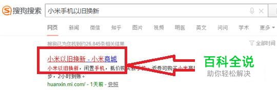 使用搜狗搜索“小米手机以旧换新”,点击进入官网。