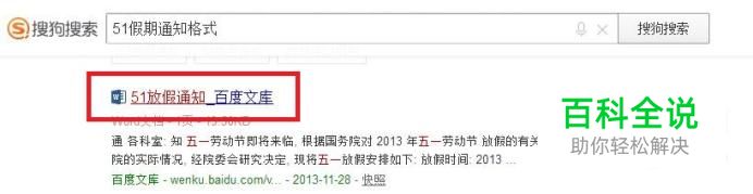 利用搜索引擎搜索需要的文档,以“5.1假期通知”为例。