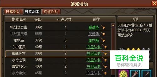 专注双倍经验时间段 这是一个很重要的概念。细心的朋友一定都已经发现了。这个游戏每天的11:30~12:30是双倍经验时段,而且这个双倍是在经验卷轴+VIP加成的基础上翻倍。由于第一天这个时段你基本是在做任务,所以没有办法去控制。但是从第二天开始。把所有高经验的日常副本留到这个时段来做,意味着什么,不言而喻。 本人总结了一下目前版本50级之前所有副本的经验排名:封灵山>冰冷虫洞>藏宝洞穴>毒雾峡谷>冰冷之洞>宠物岛>蜘蛛洞穴;所以每天的11:30,做好准备,吃起药水开始刷这些副本吧。推荐全部用手动操作,目前游戏的挂机设定有点呆,会浪费你很多时间。每天在双倍经验段刷掉这些副本足够你升1~1.5级了。