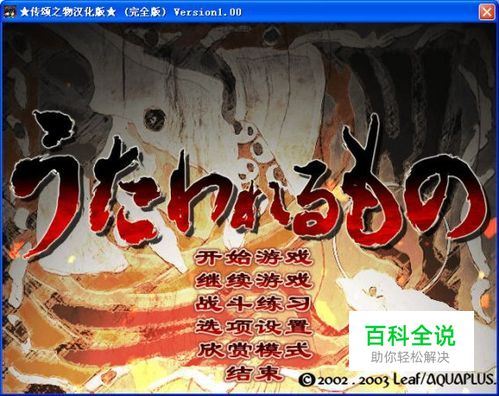 游戏介绍: 《传颂之物》(うたわれるもの,台湾代理商普威尔译为受赞颂者)是一款由日本Leaf公司发行的AVG+S-RPG游戏。游戏讲述了在一个奇妙世界(未来日本)发生的战争故事。本游戏已经被制作成一部26集的动画,并于2006年4月至9月在日本播出。这部动画在台湾地区由普威尔代理发行。PC版游戏[18禁]