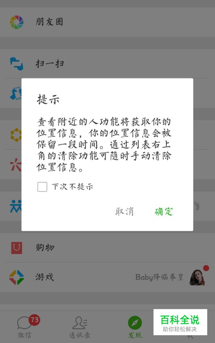 接下来点击“附近的人”,提示点击确定