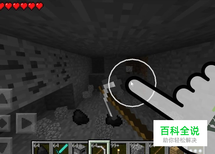 看到金矿石后,用铁镐或者钻石镐挖。