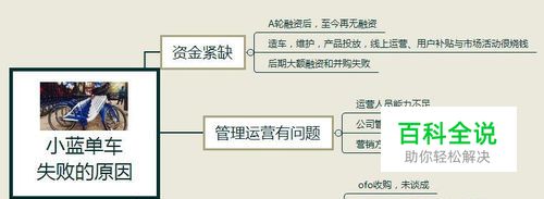 是以,在如此凶险的一线城市求生存,是非常需要战略谋划的,然而外界对于小蓝单车的轰然倒塌,最直观的原因是其资金不足。确实,小蓝单车在今年初曾获得4亿元人民币的A轮融资。但是在A轮之后,已再无融资进账。6月份的一次事故也导致B轮融资的失败。XMind思维导图分析说明说明,再好的idea也需要更加合理的运营,实际的演算,资金的靠背去推动,否则一切都会石沉大海。