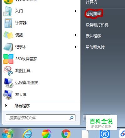 单击桌面左下角的“开始”按钮,从中点击“控制面板”。