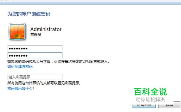 在界面里输入两遍密码,再点下面的“创建密码”。