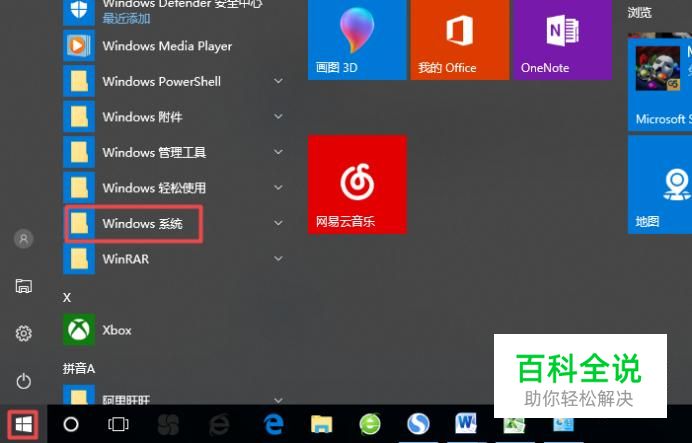 首先,我们点击电脑左下角的微软按钮,弹出的界面,我们下滑界面,找到windows系统,然后点击它;