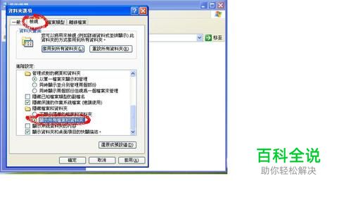 打开“我的电脑”,点击“工具→文件夹选项→查看”,在“高级设置”里选中“显示所有文件和文件夹”,“确定”,如不能正常显示隐藏文件,按以下方法进行。