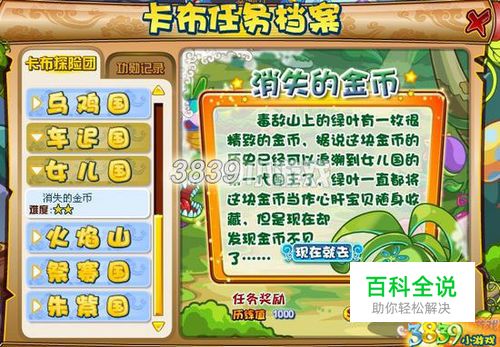 这是女儿国的支线任务-消失的金币,女儿国是卡布探险团的一个支线任务。