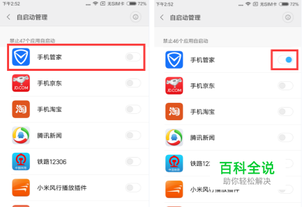 自启动--(手管如何设置开机自动运行) 在桌面找到“安全中心”并打开,点击“授权管理”—“自启动管理”,在软件列表中找到“手机管家”并滑动右边小圆点即可开启手机管家的自启动权限。