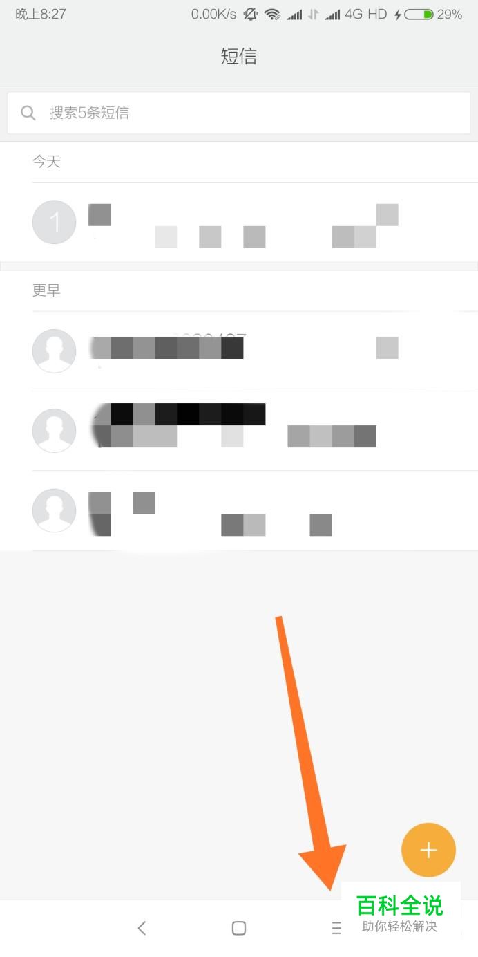 首先进入小米手机的“短信”应用,长按菜单键,进入短信设置。