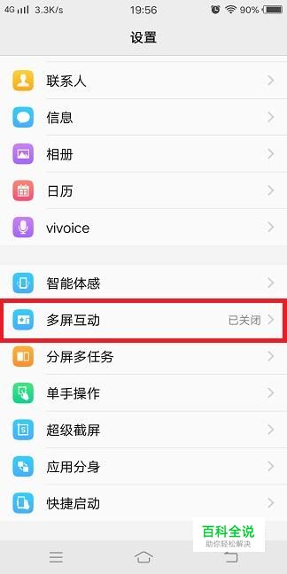 在设置菜单中,下滑找到多屏互动,点击进入即可,如图所示