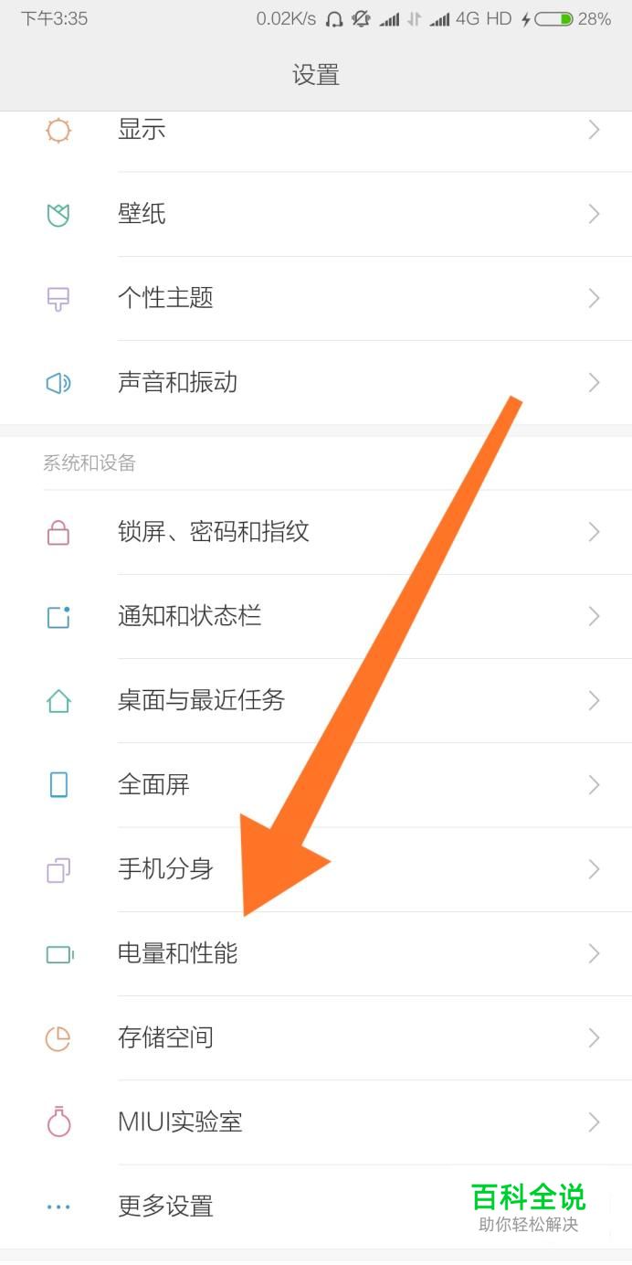 然后点击进入“电量和性能”设置选项。
