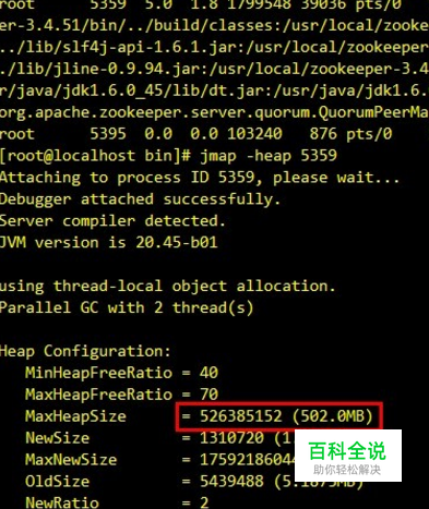 运行zookeeper时,使用jmap -heap <pid> 命令查看内存情况如下