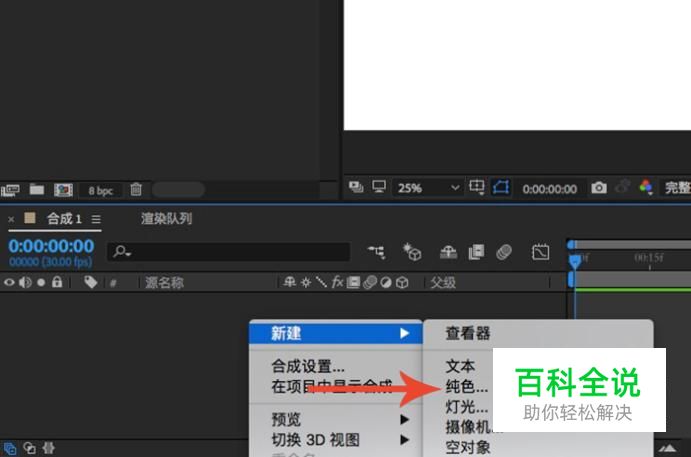 合成创建完成之后,右键点击图层面板新建一个纯色固态层,或者直接快捷键ctrl+Y创建。