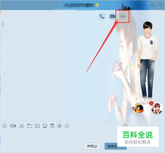 打开需要进行屏幕分享的聊天对话框,点击图示位置调出完整的菜单栏,如图所示。