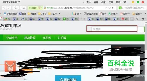 单击扩展按钮进入360应用市场页面,如下面图中所示,在下图的搜索框中输入二维码,并按回车执行搜索。