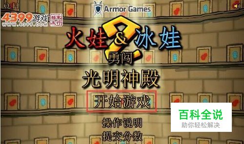 1·先下载好火娃冰娃闯关2无敌版,点击play,点击【开始游戏】,点击【初学者】。