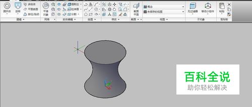 在【功能区】选项板中选择【常用】选项卡,在【修改】面板中单击【三维旋转】按钮,或在快速访问工具栏选择【显示菜单栏】命令,在弹出的菜单中选择【修改】|【三维操作】|【三维旋转】命令(ROTATE3D),可以使对象绕三维空间中任意轴(X轴、Y轴或Z轴)、视图、对象或两点旋转。接下来,小编将如图所示的图形绕X轴旋转45°。