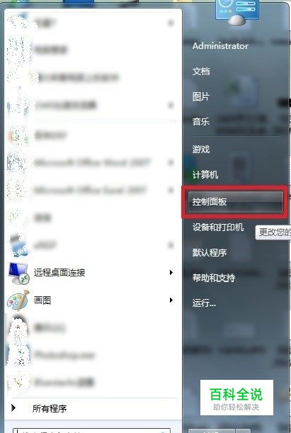 点击【开始】-【控制面板】
