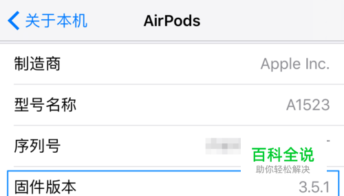 对于 AirPods 而言,苹果并没有为用户提供手动升级的功能选项,它的升级是系统连接自动的。如下图所示,个人的 AirPods 固件当前为 3.5.1 版本。