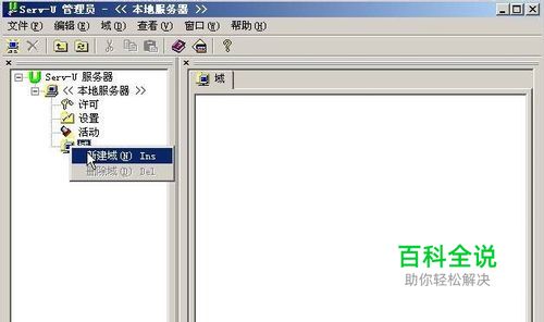 图1 双击打开“Server-u”新建域 右键选择“新建域”图3 这里输入ip地址 图4 这里输入域名