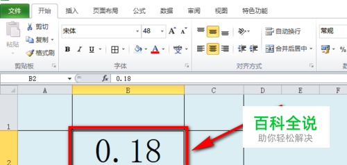 输入好数据之后,点击鼠标左键选中数值所在的单元格,然后在工具栏中图示的位置找到“%”符号,找到后点击该符号。
