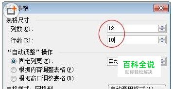 选择菜单栏的“表格”-->插入表格-->表格,在弹出的“插入表格”窗口中将列数设置为12,行数设置为10,如图所示: