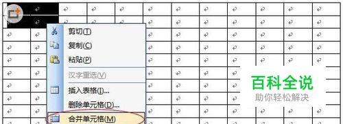 选中第一排前两个和第二排前两个单元格,单击右键选择“合并单元格”,如图所示: